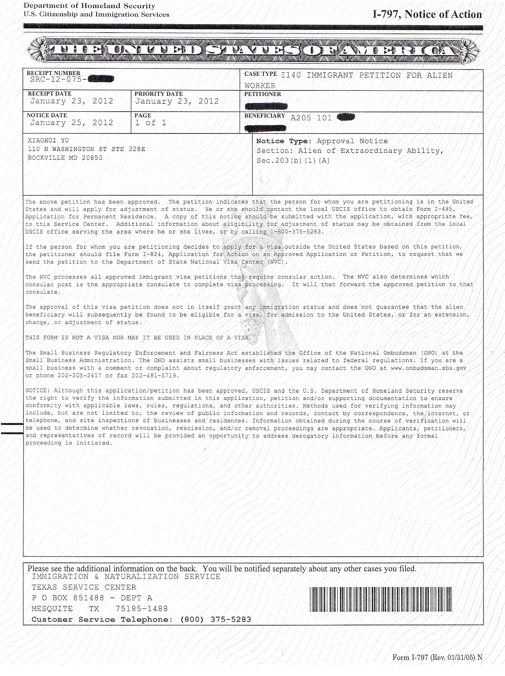 Our attorneys worked diligently to prove Dr. Ni's research to be at an outstanding and groundbreaking level by skillfully utilizing the provided information. Thanks to ourdedication and profound experience in handling such profiles and cases, and our skillful presentation of the evidence which showed that Dr. Ni was without a doubt an outstanding researcher, we received the approval notice for Dr. Ni¡¯s Alien of Extraordinary Ability petition on the same day as the electronic receipt notice, which is unprecedented especially in a situation such as this. Although Dr. Ni¡¯s case was not exceptionally strong, our attorneys saw great potential in his research abilities, and we collected key evidence and presented it convincingly, leading to the petition¡¯s quick and unequivocal approval. Amazingly, the case was approved by the USCIS in one day. Our team of attorneys expertly constructed an outstanding petition to match Dr. Ni¡¯s outstanding abilities and we are all extremely gratified over the miracluous result of this case in such a short period of time.